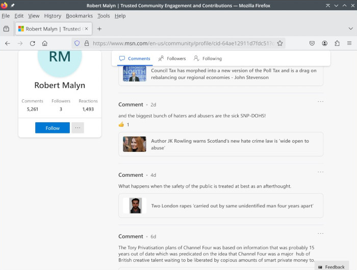 And a post on www.msn.com/en-us/community/profile/cid-64ae12911d7fdc51?ocid=iehpELMEMhx on 13th October 2023: